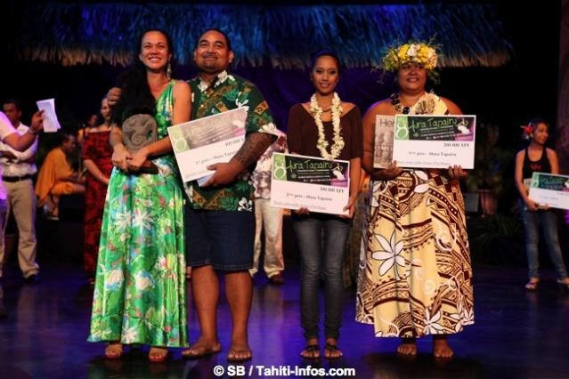 Pour la catégorie Hura Tapairu, 5 groupes se sont produits lors de la deuxième partie de soirée. C’est avec une grande émotion que Tiare Trompette est venue chercher ses deux prix, les larmes aux yeux. L’ensemble du groupe a manifesté sa joie pour cette victoire. C’est la 3ème fois que Hei Tahiti remporte ce prix.