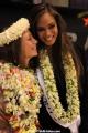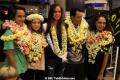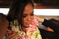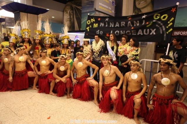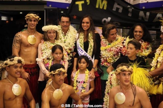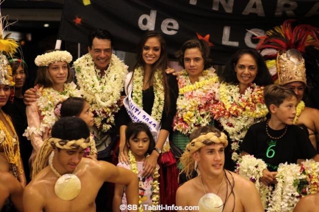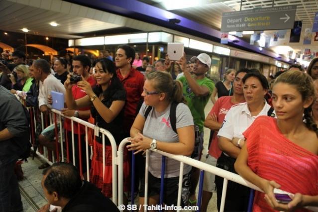 Elle a été accueillie par trois groupes de danse polynésienne, le ministre de la jeunesse et des sports local, et près de deux cents fans, malgré l’heure tardive et une pluie diluvienne.
