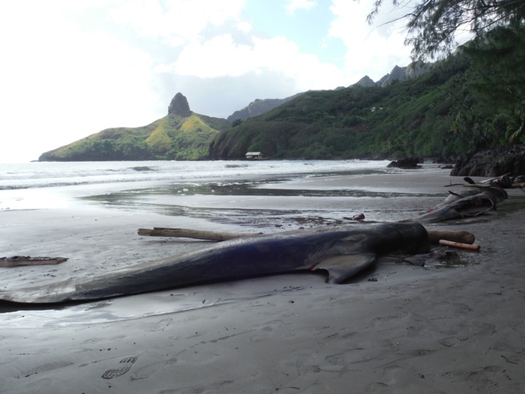 HIVA OA, le 9 juin 2016 - Ce sont des pêcheurs qui ont découvert, mardi dernier, les mammifères marins échoués.