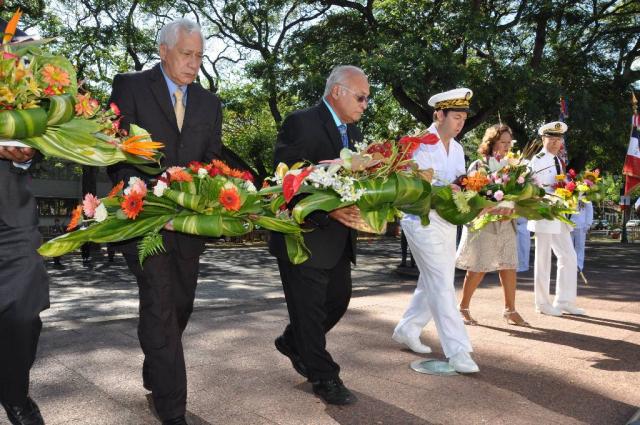 M. Stéphane JARLEGAND, Directeur de cabinet du Haut-Commissaire a présidé ce matin, la cérémonie organisée à l'occasion de la journée nationale d'hommage aux Harkis et aux autres membres des formations supplétives de la guerre d'Algérie, aux côtés de M. Etienne CHIMIN, Secrétaire général du Gouvernement de la Polynésie française, de Mme Chantal GALENON, 2ème vice-présidente de l'Assemblée de la Polynésie française, de M. Jean-Claude CLARK, premier adjoint au Maire de Papeete, de M. Jean TAMA, Président du CESC et du Commissaire Jean-Louis JEHL, représentant le Commandant supérieur des forces armées en Polynésie française.