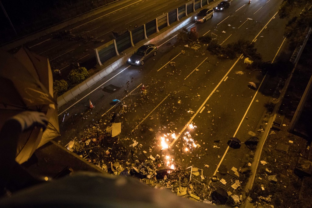 En l'absence de concessions de l'exécutif pro-Pékin, les manifestants ont opté pour une nouvelle stratégie, "Eclore partout" ("Blossom Everywhere"), consistant à multiplier les blocages simultanés pour éprouver au maximum les capacités de la police.