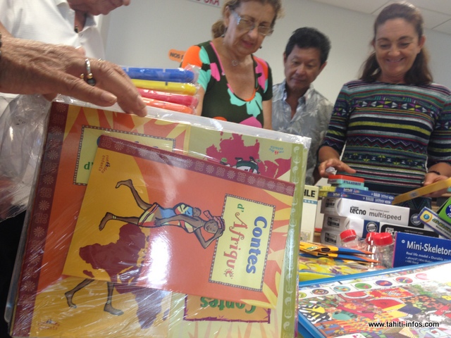 PIRAE, le 15/01/2016 - L'association "Nape Ora" vient tous les ans en aide à la cellule école du service de pédiatrie, en leur fournissant divers matériels ludiques. Ce matin, son président a remis plusieurs livres, cahiers ou encore jeux à l'enseignante spécialisée du service. Du matériel nécessaire pour accompagner au mieux les enfants hospitalisés et ne pas les pénaliser dans leur cursus scolaire.