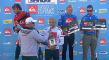 Kelly Slater s’est imposé en finale face à Dane Reynolds, la wildcard de cette compétition. Dane en effet ne fait pas toutes les compétitions de l’année, il était « invité », il a la réputation d’être un des meilleurs surfeurs actuels, il vient de le prouver.