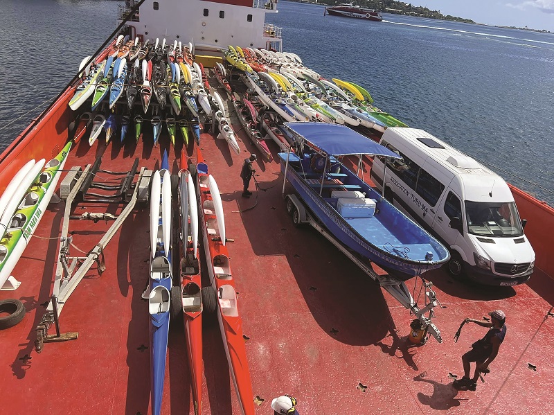 La Hawaiki nui va’a, grande course internationale de va’a en Polynésie, a été suspendue pendant deux ans en raison de la crise sanitaire. Cette année, l’événement est de retour pour sa 29e édition qui se déroulera sur trois jours, du 26 au 28 octobre. Pour rappel, le traditionnel parcours aux îles Sous-le-Vent débute à Huahine pour se terminer à Bora Bora, en passant d’abord par Raiatea et Taha’a. À deux jours de la course, les pirogues ont été comptées, contrôlées et pesées, ce lundi, avant d’être embarquées à destination de Huahine.