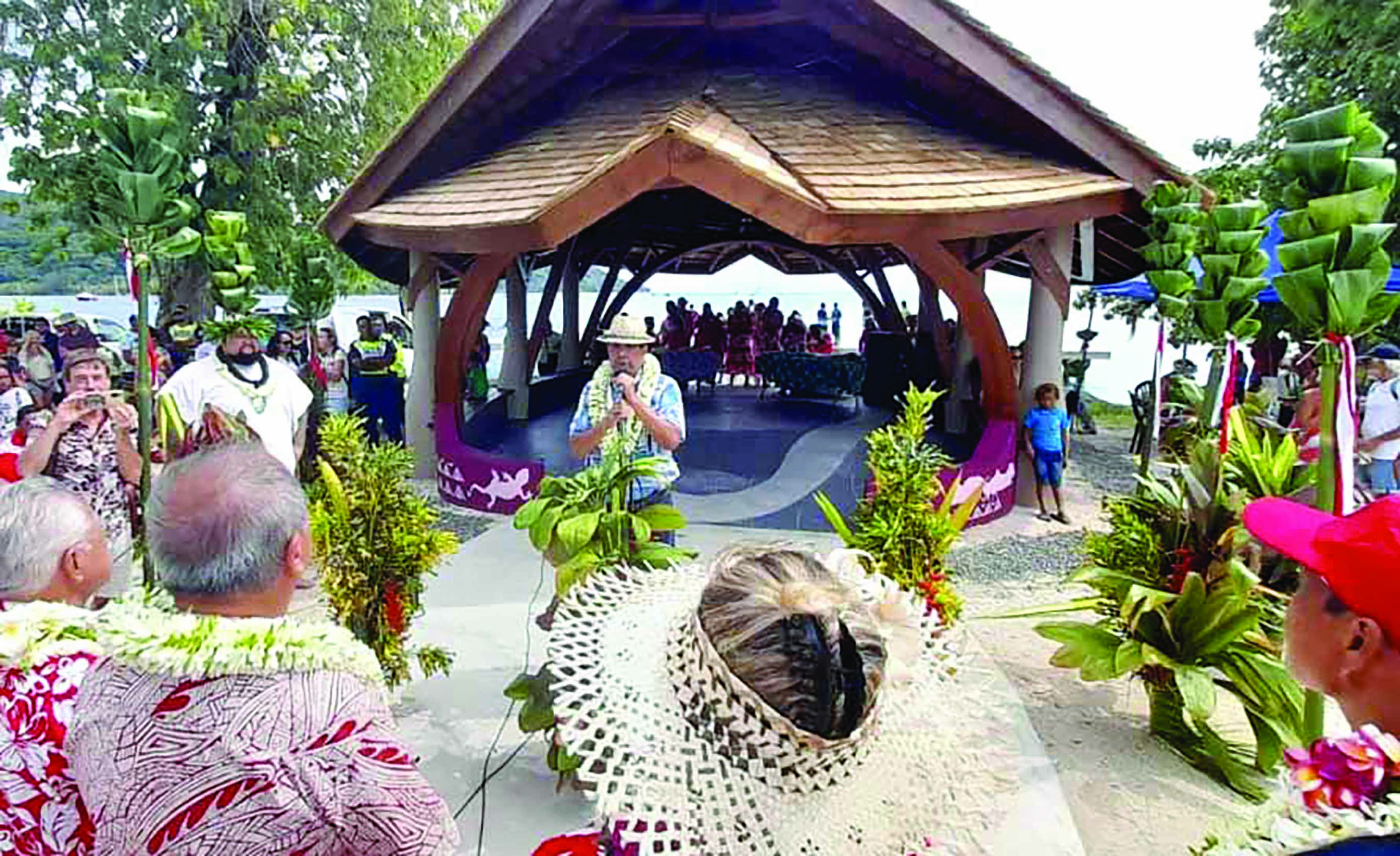 D’une part, en tant qu’île-hôte marquant le départ de la course, Huahine a démoli, puis reconstruit à hauteur de 21 millions de Fcfp son “fare d’accueil” dans la commune de Fare. Il a été inauguré avant le début de la manifestation, lundi, par le président, Édouard Fritch, et son ministre de l’agriculture, Tearii Alpha. Dans cette même journée, a été édifié un monument en pierres dédié à la Hawaiki nui va’a, jouxtant le “fare d’accueil”. Situés en plein cœur du village, ces deux édifices constituent un lieu de passage incontournable, surtout pour l’événement. Le ponton de Fare a également été réhabilité en raison de la forte affluence prévue pour cette occasion.