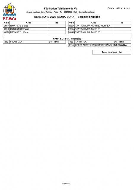 Les équipages ont également été confirmés ce lundi. L’édition 2022 compte 98 équipes avec la participation de 55 clubs engagés en catégorie Seniors hommes, dont deux de France et une de Hawaii ; et 23 en catégorie Vétérans hommes 40 et 50, dont une d’Australie. Chez les femmes, 13 équipes sont engagées en catégorie Seniors dames, dont une de France et une de Hawaii, et 7 en Vétérans dames.
