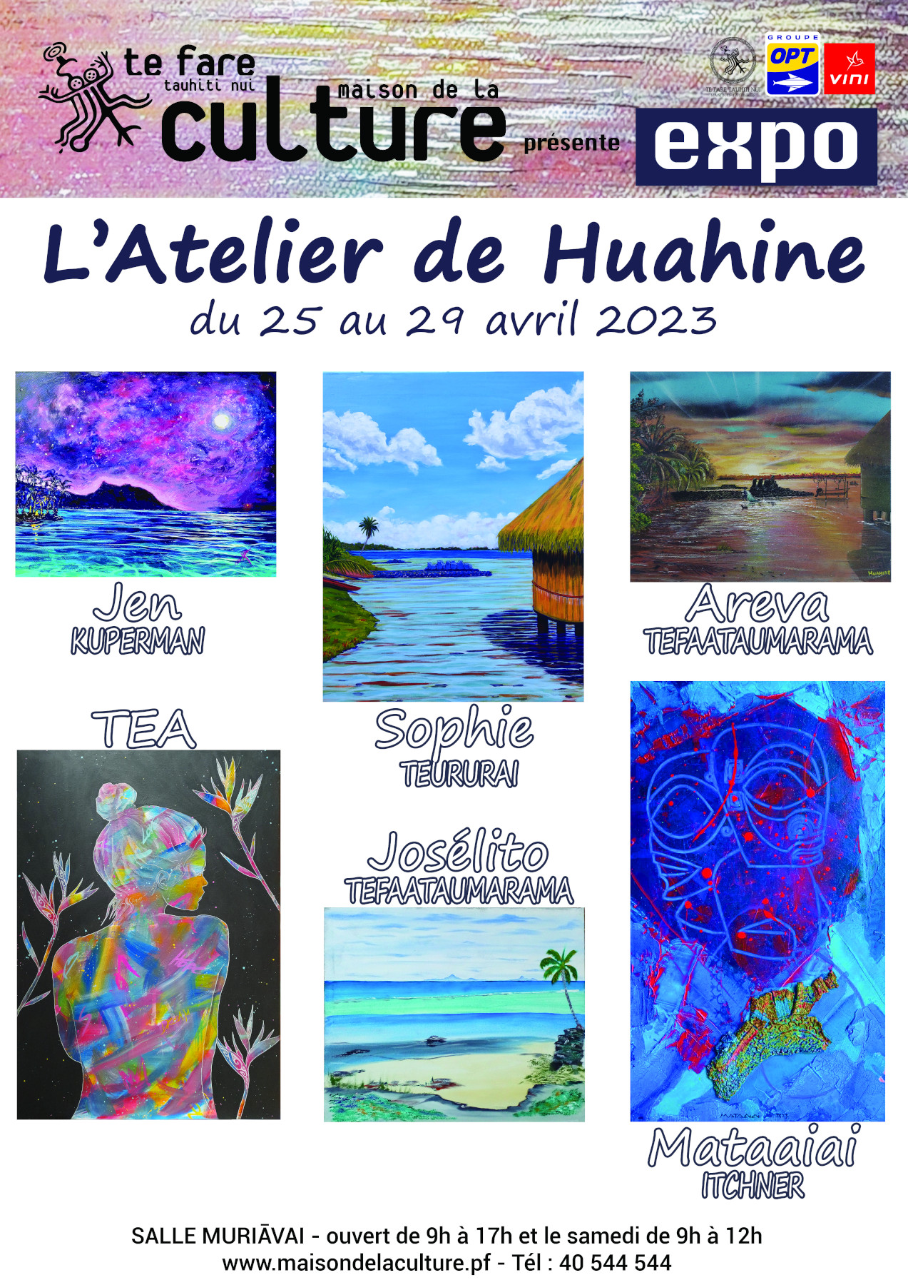 TAHITI, le 24 avril 2023 - L’atelier de Huahine est un groupe d’artistes peintres qui exposera du 25 au 29 avril à la salle Muriāvai. Un rendez-vous annuel donné au public de Tahiti depuis cinq ans.