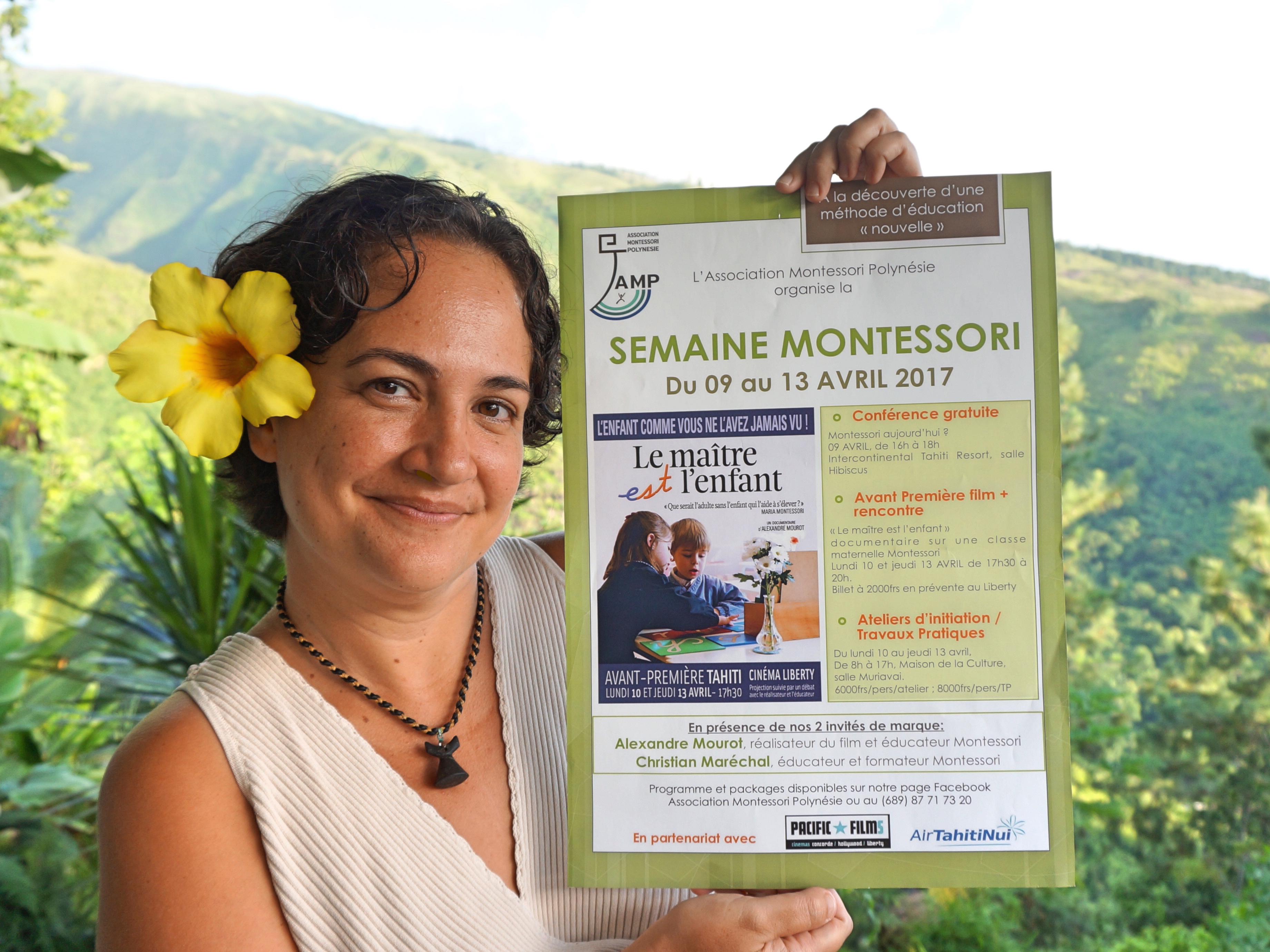 Du lundi 10 au jeudi 13 avril : ateliers d'initiation et travaux pratiques dans la salle Muriavai de la Maison de la culture de 8 heures à 17 heures. Programme détaillé sur la page Facebook de l'association Montessori Polynésie.