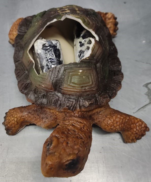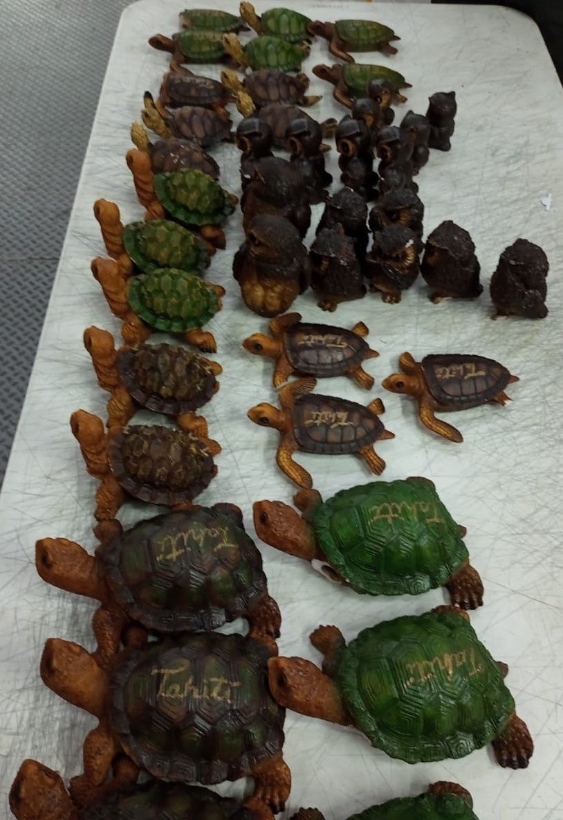 Tahiti, le 20 mai 2023. Selon la garde nationale Mexicaine, une quarantaine d'emballages contenant de l'ice ont été découverts dans des figurines de tortues à destination de Tahiti.