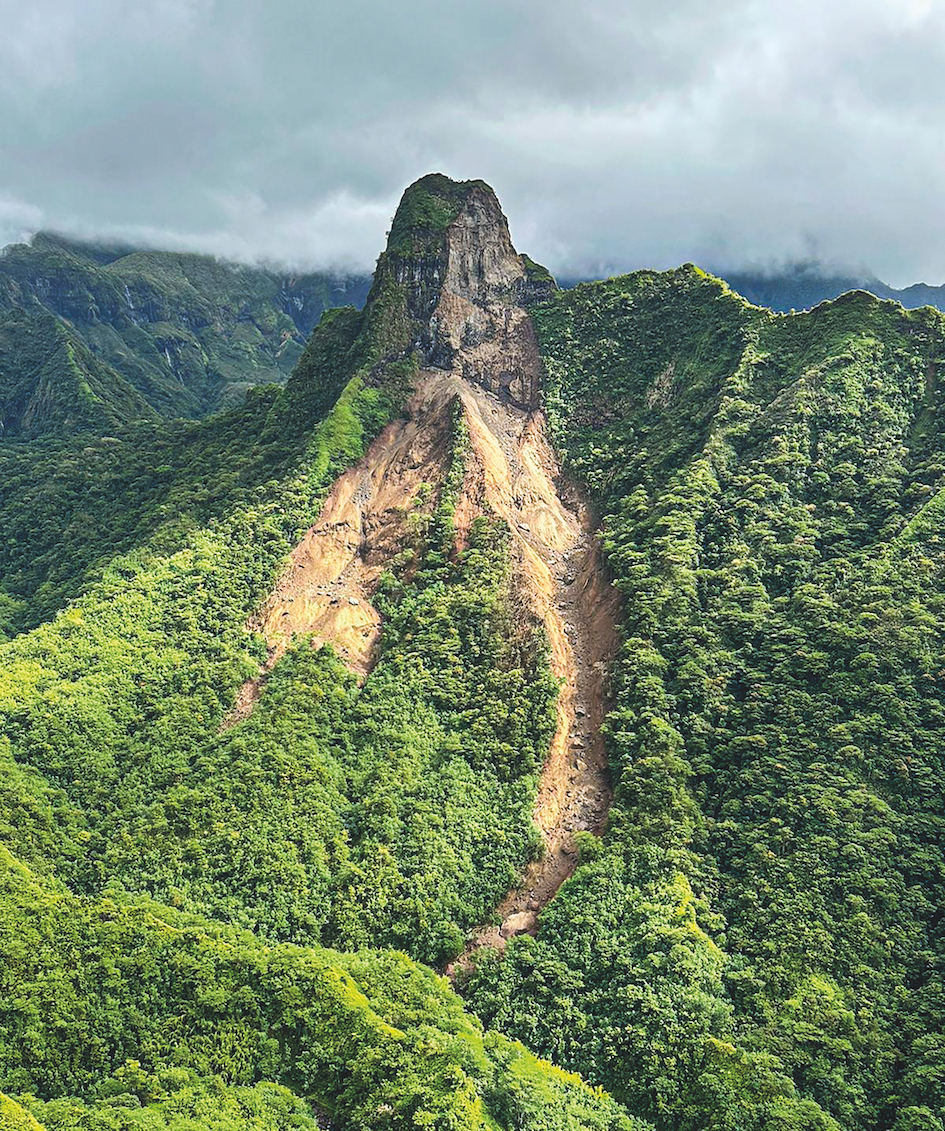 Tahiti, le 16 août 2023 - Le pan d'une montagne s'est écroulé ce week-end sur les hauteurs de la Maroto, dans la vallée de la Papenoo. Aucune victime et aucun dégât matériel ne sont à déplorer. Si ces éboulements sont impressionnants, ils ne nécessitent pas forcément d'intervention.