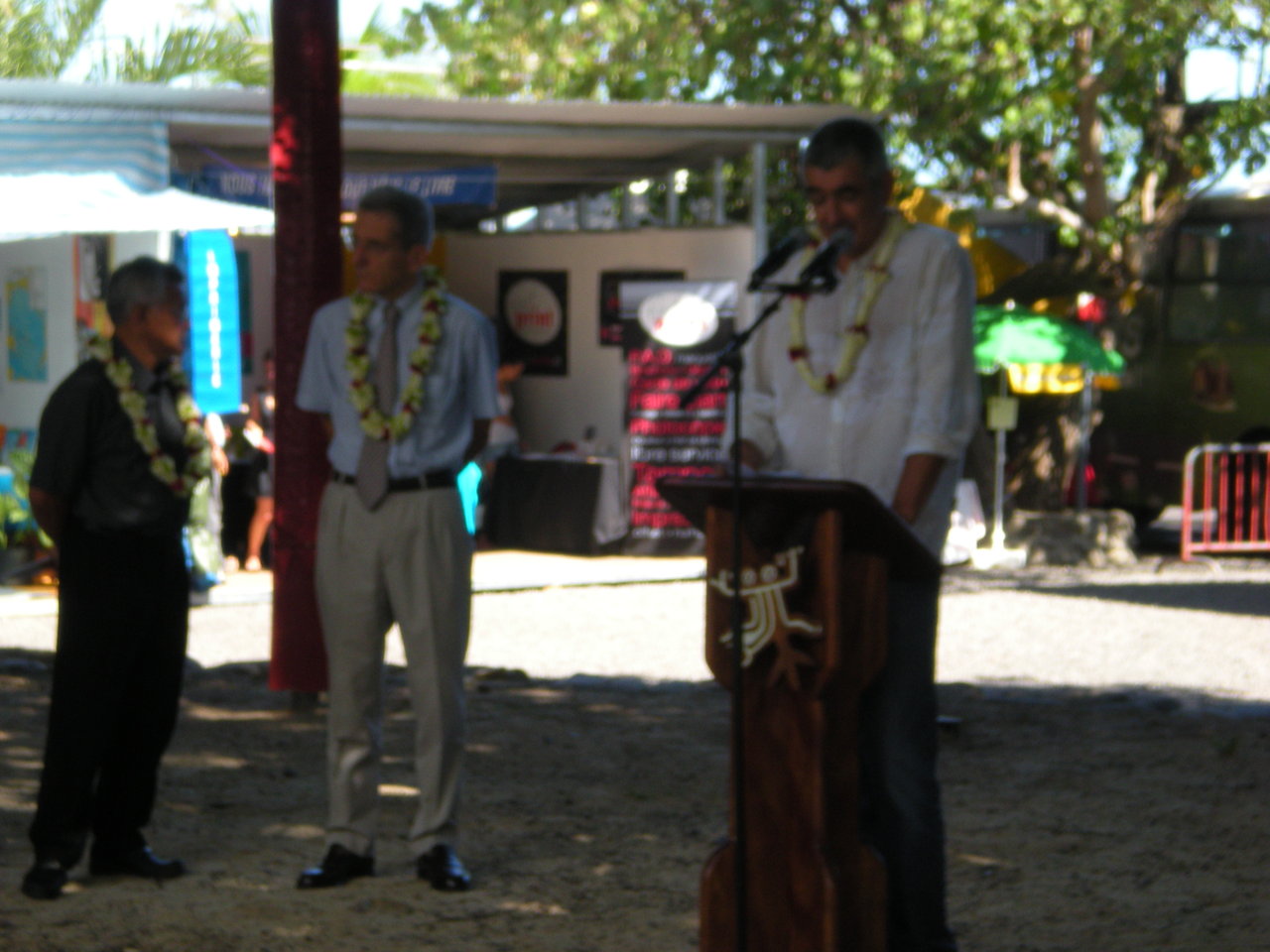 Ce matin a eu lieu l'ouverture du salon "Lire en Polynésie" dans les jardins de la Maison de la Culture en présence du Haut-Commissaire, de M. Gaston TONG SANG, président de la Polynésie française, de M. le sénateur Richard TUHEIAVA, du député maire de Papeete Michel BUILLARD, du député maire de Papara Bruno Sandras et les principales autorités du Pays.