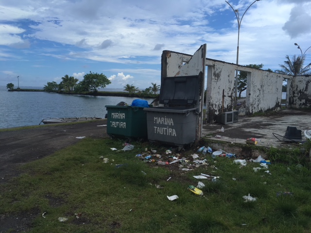 Alors que les bacs à ordures ne sont pas pleins, des habitants ou des usagers de la marina de Tautira ont préféré jeter leurs détritus par terre.
