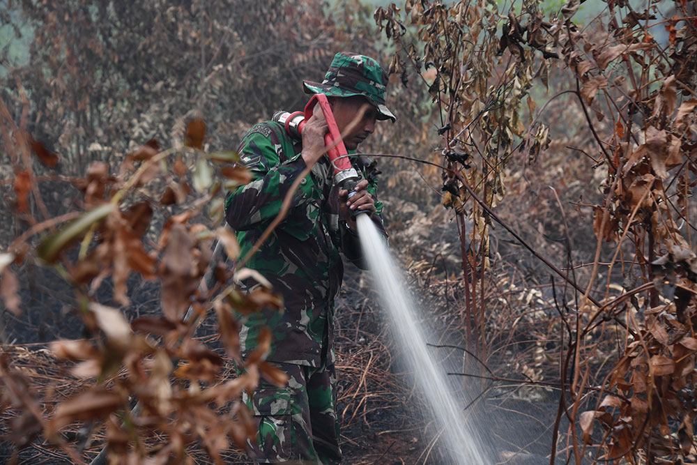 Les forces armées indonésiennes ont été mobilisées pour lutter contre les flammes, notamment dans les zone de tourbières asséchées où les incendies sont très difficiles à éteindre.