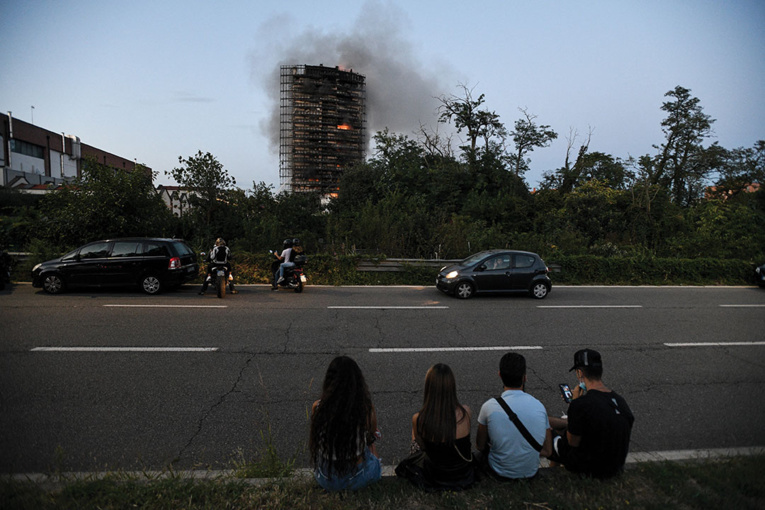 Milan, Italie | AFP | dimanche 29/08/2021 - Un immeuble résidentiel de 20 étages a été ravagé par un spectaculaire incendie dimanche à Milan (nord de l'Italie), ont annoncé les secours sans faire état de victimes.
