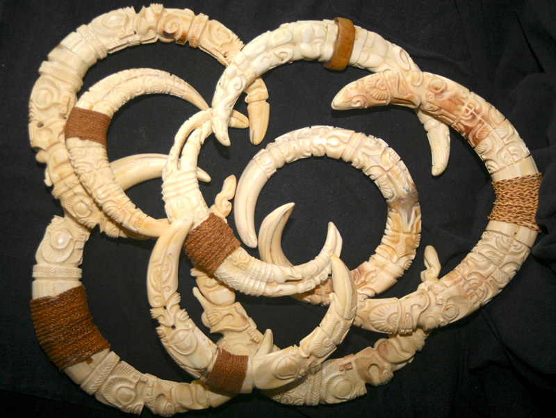 Les sources d’ivoire étaient et sont restées, il est vrai, très réduites (d’autant que dès 1989, la CITES, Convention of International Trade in Endangered Species of Wild Fauna, a interdit tout commerce d’ivoire d’éléphant, de morse, de cachalot, d’hippopotame, etc.) ; mais malgré tout, de séjours en Métropole, certains militaires polynésiens ramenèrent des pièces non soumises à la Cites (dents de phacochères par exemple), tandis que d’autres, des soldats ayant été en poste en Afrique, introduisirent de l’ivoire d’éléphant avant 1989 (bracelets, petites défenses, bibelots…).