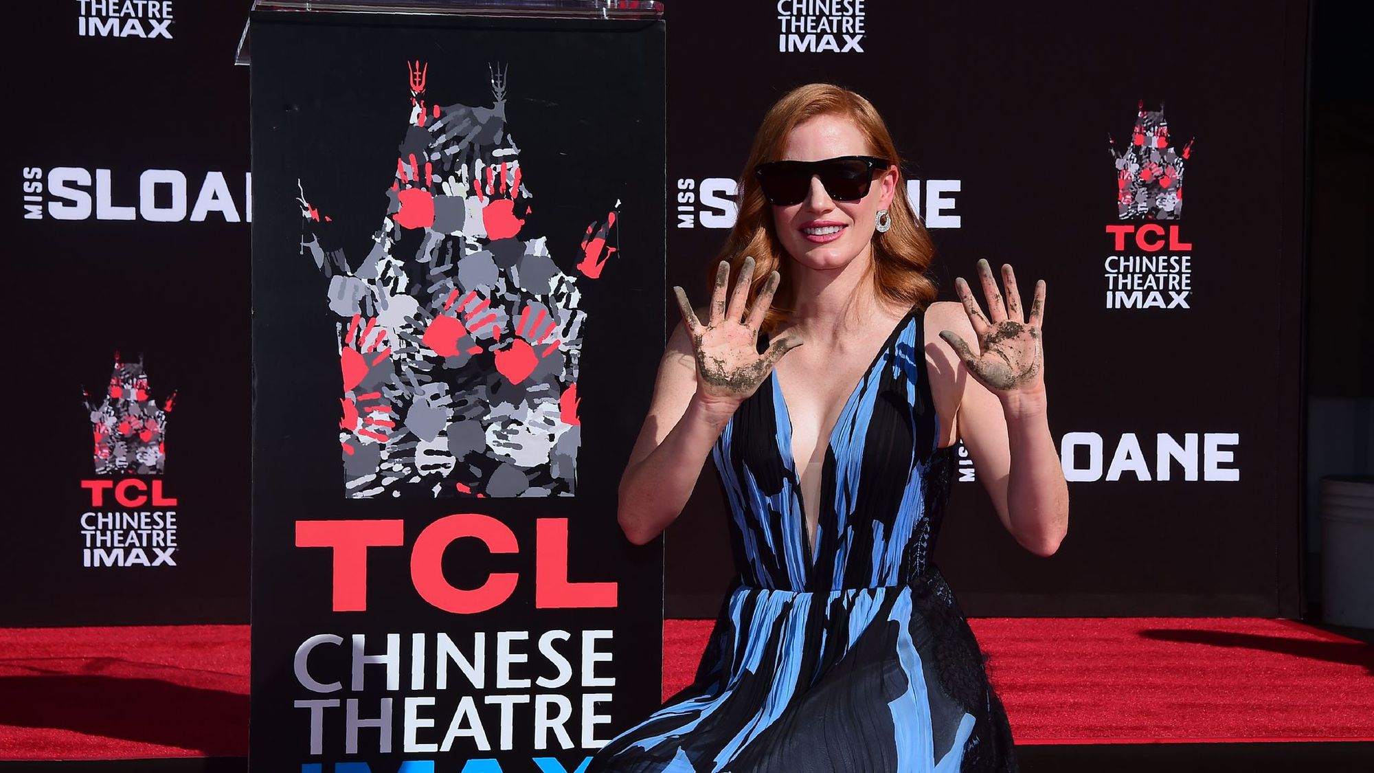 L'actrice américaine Jessica Chastain, nommée en 2012 pour l'Oscar de la meilleure actrice, a gravé jeudi ses empreintes de mains et de pieds, ou plutôt de talons aiguilles, à Hollywood.