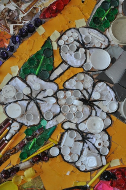 Après plusieurs semaines de travail, la sculpture est aujourd'hui finie. Cette réalisation collective à laquelle tous les élèves ont collaboré s'est faite sous la direction d'une équipe d'élèves éco-délégués de classe, accompagnés de leur professeur d'arts plastiques Frédéric Rico.