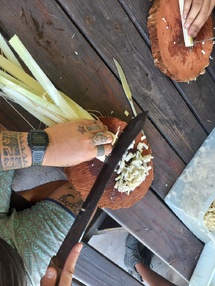 Au Centre des métiers d’art, les élèves ont invité le public à fabriquer du papier dès 9 heures. Ils ont coupé en petits morceaux des troncs de bananiers, les ont broyés avec un peu d’eau puis les ont mis à sécher. Tiffany Vahinetua a rappelé avoir elle-même utilisé du papier réalisé à base de purau et de ‘uru pour une œuvre qui a été exposée au Carrousel du Louvres en 2023. La journée a permis aux élèves de partager leur savoir-faire.