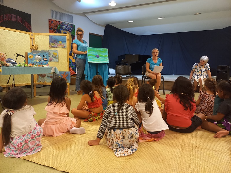 Le musée de Tahiti et des îles a ouvert, exceptionnellement, son fonds documentaire polynésien et accueilli Raanui Daunassans, l’auteur de Marau Taaroa, dernière reine de Tahiti, pour une conférence et une séance de dédicace. Le rendez-vous a affiché complet. Le CAPF, quant à lui, a proposé des ateliers animés par des bénévoles de Polynélivre et permis au Bibliobus de recevoir les enfants de passage. “C’est une très belle initiative”, a commenté l’enseignante Rebecca Hunter. Elle était de passage avec sa classe de maternelle. “Les enfants ont été captivés par les lectures, et en particulier celle du kamishibaï. Et cela nous a inspirés pour proposer de nouvelles activités et manières d’animer les lectures en classe.” Le kamishibaï est un genre narratif japonais, une sorte de théâtre ambulant, où des artistes racontent des histoires en faisant défiler des illustrations devant les spectateurs. Les textes étant souvent écrits au dos des illustrations.