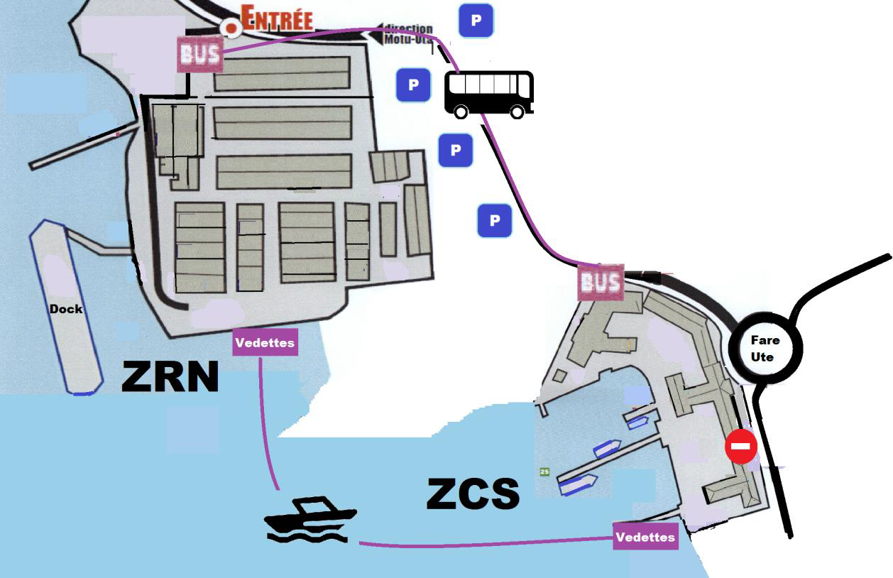 Deux sites seront ouverts : la base navale et la zone de réparation navale avec le dock. Le parking sera situé à Fare Ute, près de Cegelec. L'entrée sera située dans la zone de réparation navale de Fare Ute (juste avant le pont de Motu Uta, mais après la route qui mène à Total). Une fois sur le site, des transferts maritimes entre les deux zones seront organisés toute la matinée pour les visiteurs de plus de six ans, ou en bus pour les personnes à mobilité réduite et les petits enfants.