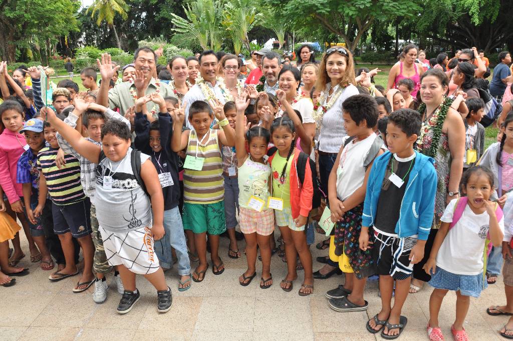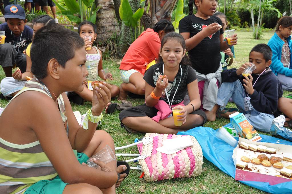 Environ 400 enfants issus des quartiers défavorisés de Papeete et des communes avoisinantes ont débuté leur journée par un un petit déjeuner dans les jardins de la Résidence avant de prendre part à de nombreuses activités ludiques.