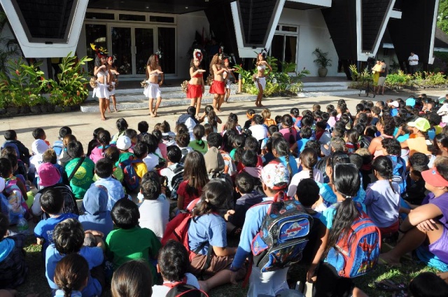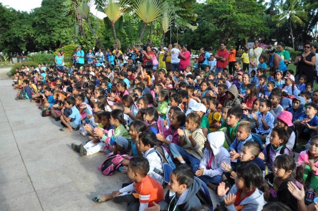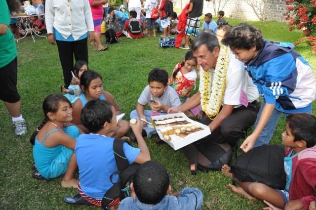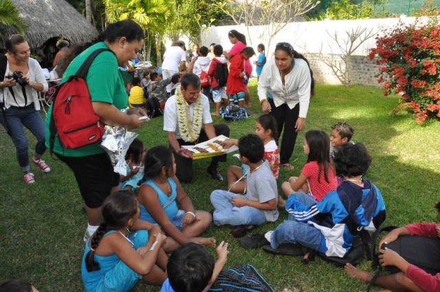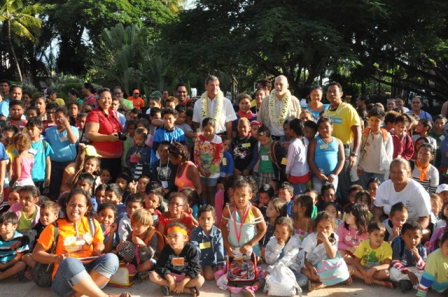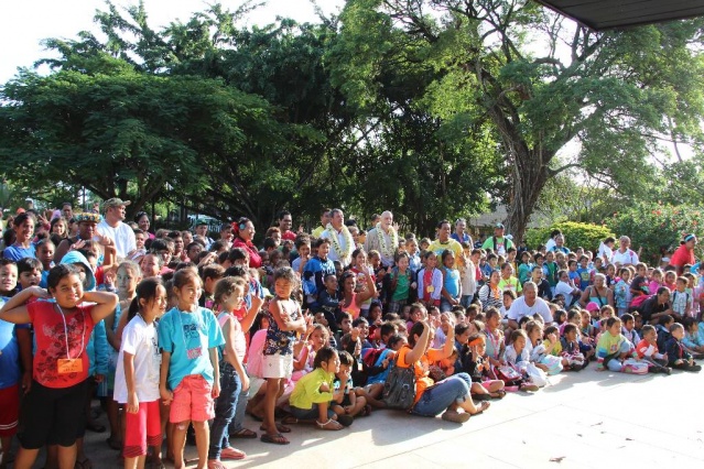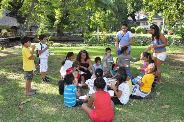 500 enfants âgés de 5 à 9 ans, issus des quartiers défavorisés de Papeete et des communes avoisinantes, ont débuté jeudi matin 25 juillet 2013 leur journée récréative par un petit déjeuner dans les jardins de la Résidence du Haut-Commissaire.