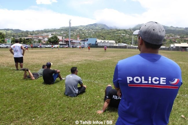 « On organise une journée ‘Coupe Uniforme’ qui regroupe tous les services et métiers de la sécurité. Port autonome, police municipale, la gendarmerie qui a fait une équipe avec les shérifs de Mahina, les gardiens de prison etc… »