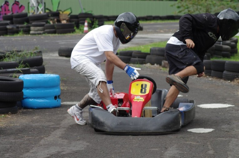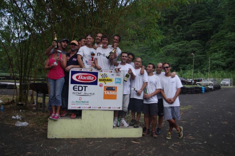 Le dimanche 29/7/12 s’est déroulé la 3e course d’endurance de 6h de karting sur le circuit de Papenoo. A cette occasion, 5 équipes d’une dizaine de pilotes environ se sont affrontés et les batailles ont été rudes ! dépassements et changements de pilote éclairs dans les stands ont été la clé du succès et c’est l’équipe de Mika JL qui s’impose devant les Bras cassés avec 1 petit tour d’avance seulement à la fin des 6h règlementaires… ces derniers avaient 10 tours d’avance à la pause de 4h mais se sont fait remonter par des pilotes sans faille qui ont su emmener leur machine au plus vite à l’image de Mika Chailloux, ancien pilote de kart international qui signe le meilleur chrono en 41.08 sur la piste de compétition, ouverte pour l’occasion.