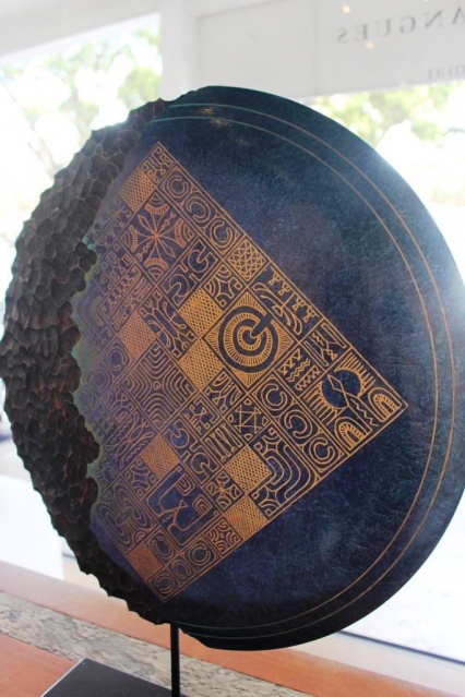 Vaiana Drollet de la galerie décrit Artefact du passé : Ce sont deux visions, deux trajectoires qui portent en elles la quête de l’origine, celle du commencement de toutes choses créées par l’homme. Cette recherche s’appuie sur notre patrimoine culturel mais pas seulement. Le parcours propre à chacun des deux artistes met en lumière des appartenances plus intimes : aux matériaux pour Ken qui par son travail de tourneur sur bois doit en premier lieu apprivoiser le bois lui donner la forme qu’il convient avant ensuite de lui construire une identité ; aux objets présents dans la mémoire collective pour Tahe, qui grâce à une technique très précise reconstitue la forme primaire, reconnaissable de ses archétypes pour en détourner le sens et lui conférer un statut d’œuvre d’art unique.