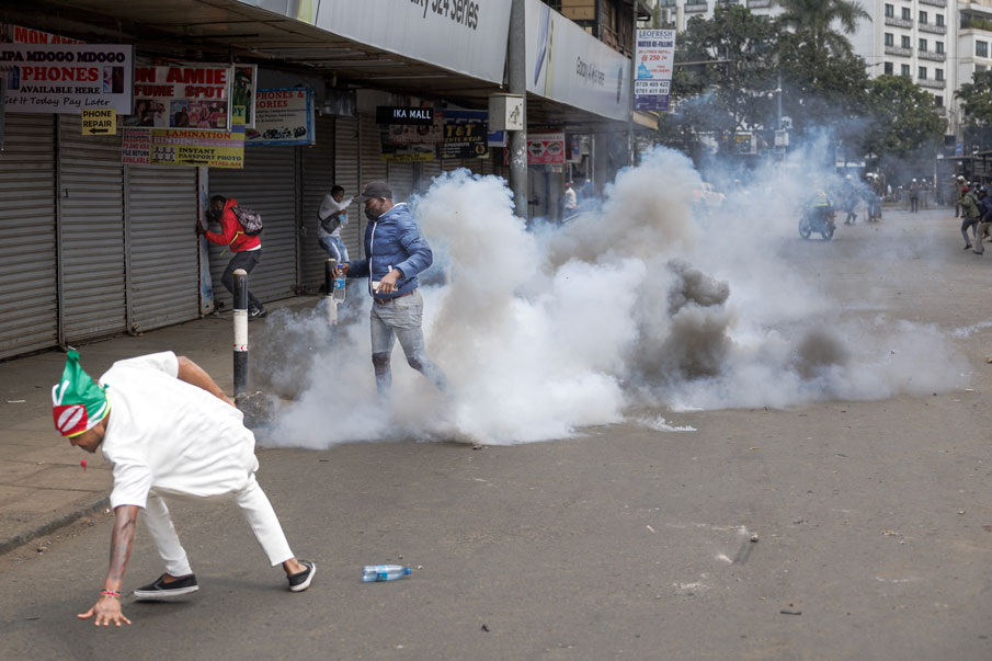 Comme jeudi dernier, la foule nombreuse, variée et pacifique des premières manifestations a laissé place mardi dans le centre d'affaires (CBD) de Nairobi à des groupes de jeunes hommes jetant des pierres aux forces de l'ordre, qui ont riposté avec des gaz lacrymogènes.