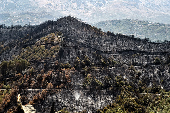 A la préfecture de Tizi Ouzou, zone qui a enregistré le plus de pertes humaines, des images prises par un photographe de l'AFP montrent à perte de vue des secteurs entiers de forêt parties en fumée.