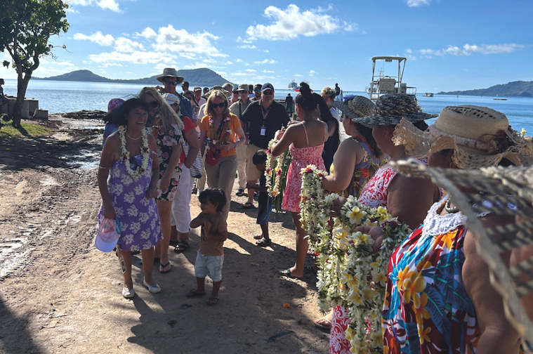 Les 130 passagers de l'Aranui ont fait escale mercredi à Mangareva où il sont été accueillis chaleureusement.©Shana Boosie-Mu