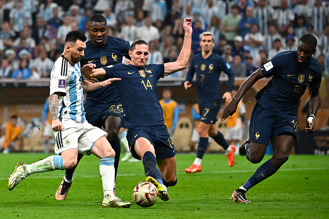 Alors que les Argentins menaient 2 à 0 grâce à son pénalty et un but de son lieutenant préféré Angel Di Maria (23e, 36e), et dominaient les champions sortants de la tête et des épaules, l'autre star sur la pelouse, Kylian Mbappé a ramené son équipe à hauteur en quelques secondes (80e, 81e). Puis Messi a vu le Français réussir son deuxième pénalty de la soirée (118e) alors que l'Argentin venait de redonner l'avantage aux siens et haranguait son public (109e).