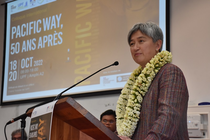 Au cours de son discours à l'université, la ministre australienne n'a pas manqué de rappeler l'attachement de son gouvernement au Forum des îles du Pacifique, dont il est membre fondateur, et au programme de développement ratifié par ses membres, intitulé 2050 Strategy for the blue Pacific continent, axé sur la résilience au changement climatique ainsi que le développement durable et humain particulièrement en matière de santé et d'éducation. Mais comme l'a rappelé l'économiste Vincent Dropsy, lors de son intervention au colloque ce jeudi matin, l'économie des îles du Pacifique est extrêmement dépendante des apports extérieurs. Sans aides financières, les stratégies de développement, quelles qu'elles soient, ont peu de chance de se matérialiser. L'Australie entend donc assumer son rôle de pays le plus riche du Forum. “Nous savons à quel point les financements régionaux sont importants pour tous les membres du Forum, y compris la Polynésie française, et nous savons que ces aides seront bénéfiques pour la région Pacifique dans son ensemble”, a reconnu Penny Wong.