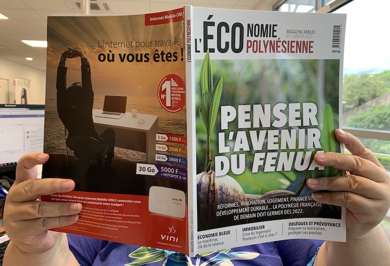 Tahiti, le 27 janvier 2022 - Le magazine annuel L'ÉCOnomie polynésienne vient de paraître. Pour sa troisième édition et comme à son habitude, la publication s'attache à décrypter l'économie locale et ses enjeux. Bien que marqué par la crise sanitaire, ce numéro titré "Penser l'avenir du fenua" se veut tourné vers l'avenir couvrant ainsi les sujets de réformes, d'innovation et de développement durable.