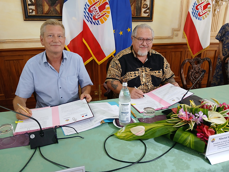 Éric Spitz et Moetai Brotherson ont par ailleurs signé la convention cadre pluriannuelle 2025-2027 du 3IF qui, rappelons-le, est l'un des trois dispositifs financiers de l'État issus de feue la DGDE (Dotation globale de développement économique), une dotation de 18 milliards de francs versée annuellement au titre de la dette nucléaire. Ce 3e instrument financier est dédié aux investissements dans les infrastructures publiques de transport (routes, ports, aéroports) pour un montant annuel de 8,7 milliards de francs dont 6,1 milliards financés par l'État. Avec un taux d'exécution de 82% pour le dernier 3IF, c'est le dispositif qui est le mieux utilisé par le Pays. Depuis sa mise en place en 2011, “ça a permis de financer 890 opérations pour un montant de 101 milliards de francs”, a souligné Éric Spitz qui précise que “ce budget sera un peu verdi avec le lancement d'opérations visant à limiter l'émission de gaz à effet de serre”.