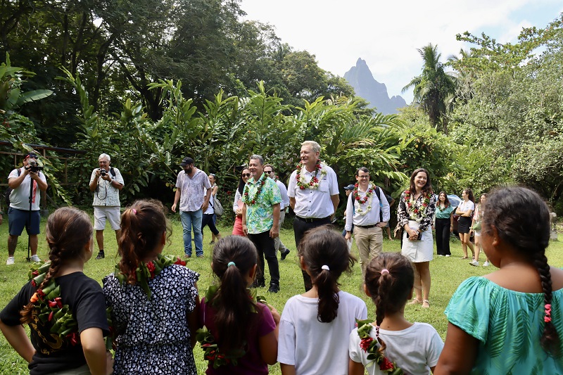 Le déplacement a également été l’occasion de présenter le projet TeMeUm 2023, mené par la Tahitian Historical Society. Ce programme, financé à plus de 60% par l’Office français de la biodiversité, vise à restaurer la biodiversité de la vallée de Opunohu et à préserver des espèces agricoles anciennes.