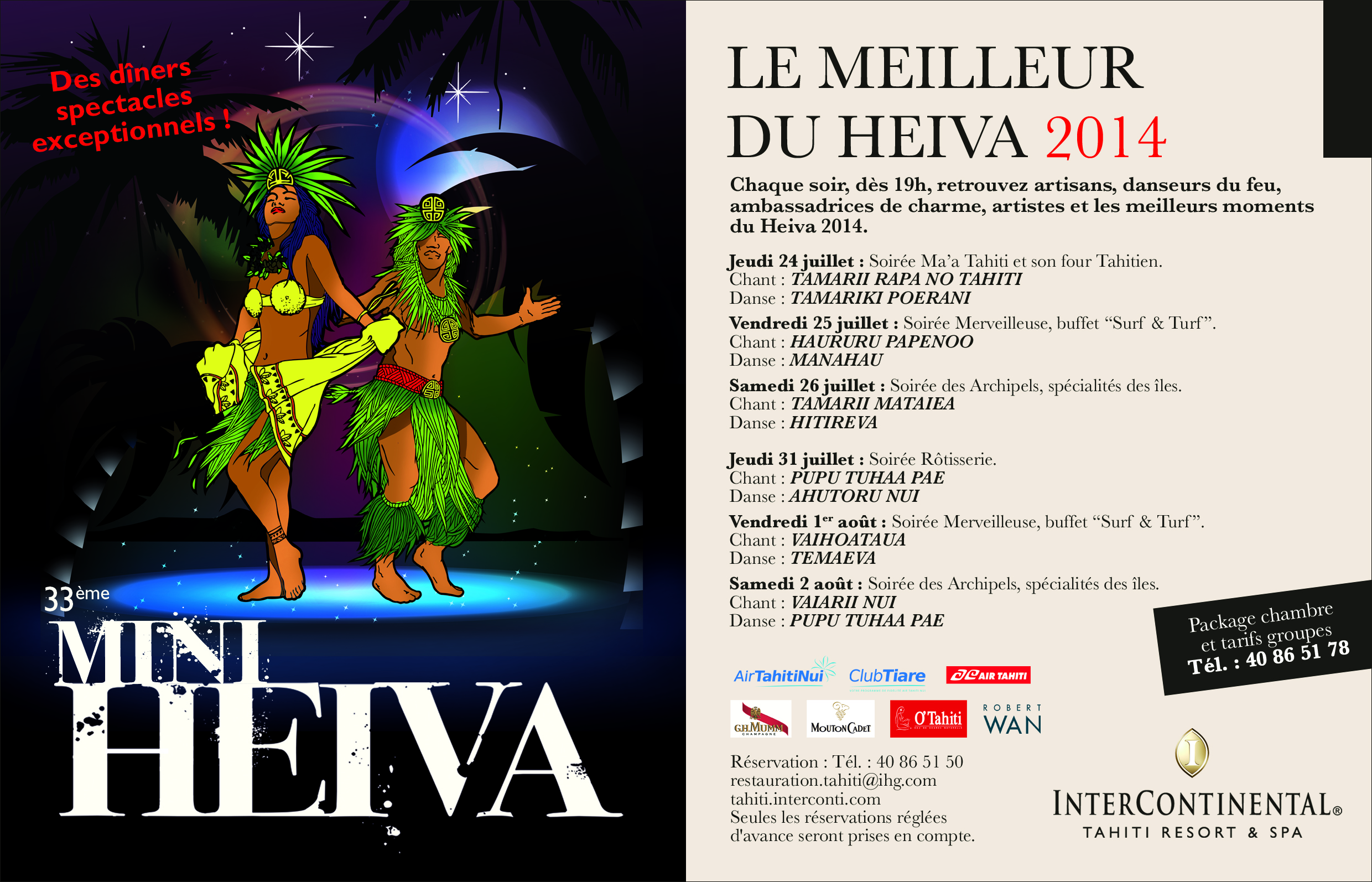 FAA’A, 21 juillet 2014 – L’hôtel InterContinental Tahiti organise six soirées de Mini Heiva, ce week-end et la semaine prochaine.