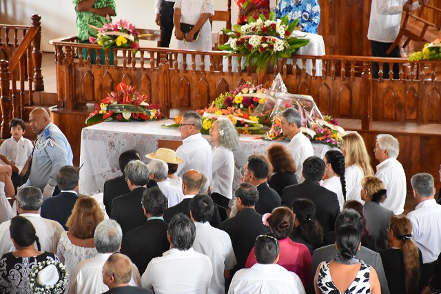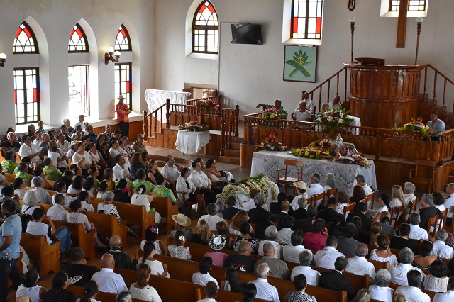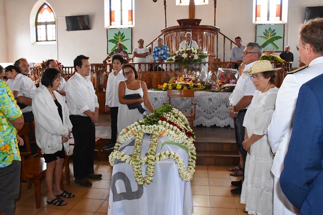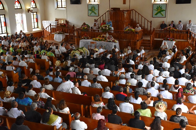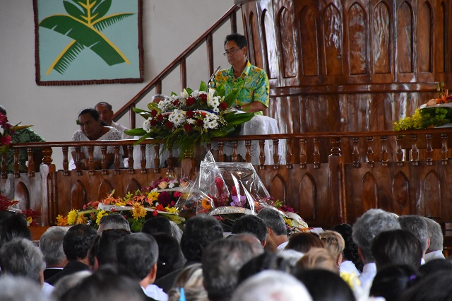 Au son des pahu et porté par les muto'i, le cercueil de Rony Tumahai est entré ce mercredi matin dans le temple protestant de Punaauia, sous le regard de sa famille, de ses proches, d'élus du conseil municipal, de l'assemblée et de membres du gouvernement, du haut-commissaire mais aussi d'agents de la commune et de simples habitants. Simplicio Lissant, premier adjoint au maire, a été le premier à prendre la parole. Il a rendu hommage à celui qui a été "notre guide et notre boussole". "Il a su nous unir au sein de notre conseil municipal et savait aussi nous reprendre quand nous nous trompions même si c'était rare qu'il nous fasse des remontrances", a-t-il souligné. Il est aussi revenu sur sa "manière de régner sur la population". Rony Tumahai avait "une vision d'excellence. Il voulait le meilleur pour sa commune. Il voulait qu'elle soit la plus belle." "Il était d'une générosité extrême" et d'une "très grande sagesse". Simplico Lissant retiendra de Rony Tumahai "sa patience et son calme à toute épreuve".