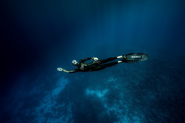 Le premier, c'est l'exploration, derrière la surface de l'eau. Le deuxième, c’est la liberté. Ici avec la visibilité extraordinaire, j'ai l'impression de voler sous l'eau. C'est la magie de l'apnée : pouvoir être libre. Le troisième, c'est la sensation d'harmonie, la connexion avec l'élément, avec la planète Terre. La planète mer devrait-on plutôt dire car quand on est au milieu du Pacifique, on a plus l'impression que c'est une planète océan qu'une planète Terre.