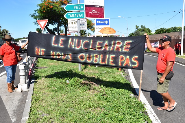 L’association 193, qui se bat notamment pour l'indemnisation des victimes des essais nucléaires, a réuni ses membres et posé des banderoles vendredi matin à quelques mètres de l‘hôtel où se tenait le 17e Forum PTOM-UE, auquel a participé la ministre des Outre-mer. « C’est la représentante du gouvernement central. C’est une pièce maitresse pour traiter le dossier du nucléaire en relation avec le Pays », explique Frère Maxime, président du bureau exécutif de l'Association 193. « Notre action est symbolique pour lui signifier que le dossier du nucléaire n’est pas fini avec les accords qu’ils ont fait avec le Pays. Parler de la contribution de la Polynésie est trompeur. Cela supposerait que la population était d‘accord alors qu’on l’a trompé. On lui avait dit que toutes les dispositions seraient prises pour qu’il n’y ait aucune conséquence. Nous constatons aujourd’hui qu’il y a des conséquences catastrophiques au moins sur le plan sanitaire avec la multiplication des cancers qui peuvent être des maladies d’origine radio-induites, sur le plan économique c’est pareil. On rafistole. »