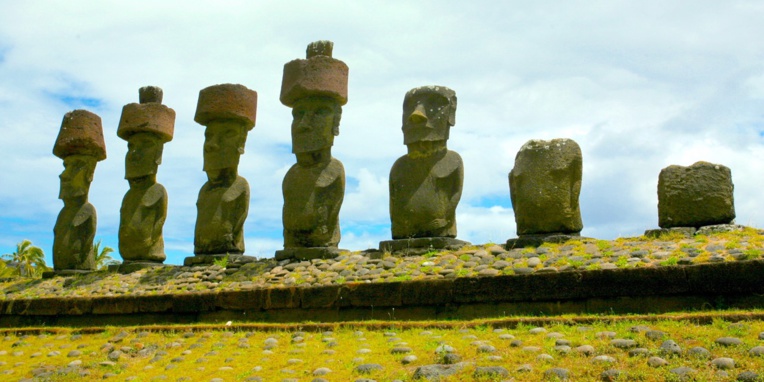 Seuls les moai (ici ceux de l’ahu Nau Nau, devant la plage de Anakena) connaissent le véritable nom de l’île de Pâques ; mais ils sont restés et resteront muets…