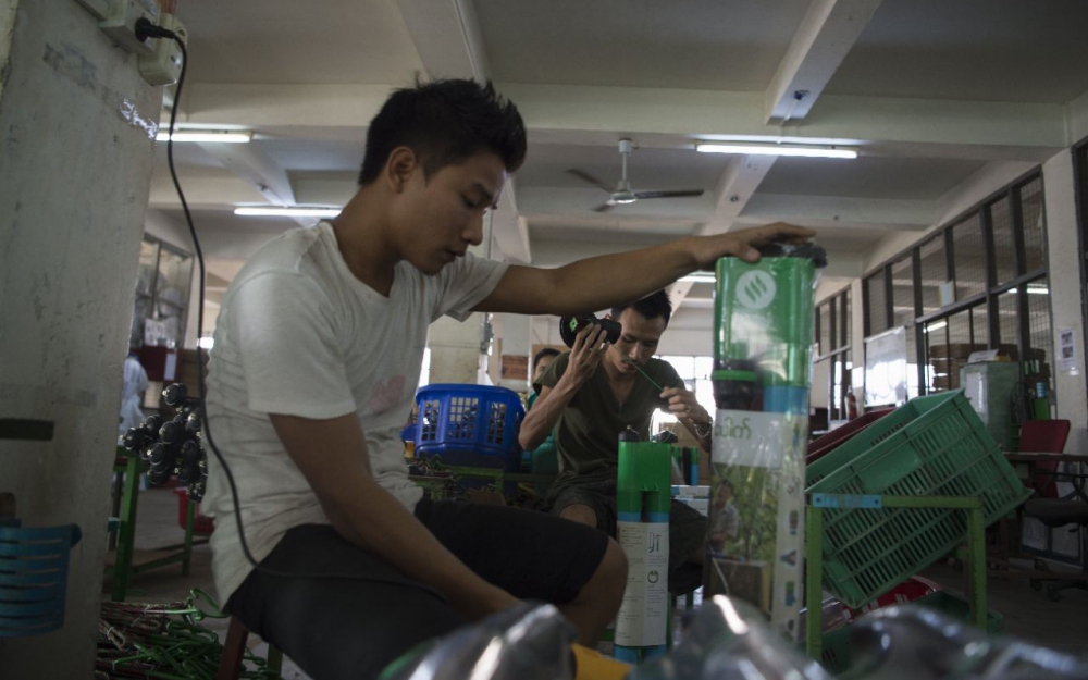 Dans un parc industriel au sud de Rangoun, la plus grande ville birmane, l'entreprise sociale Proximity Designs travaille directement avec les agriculteurs.