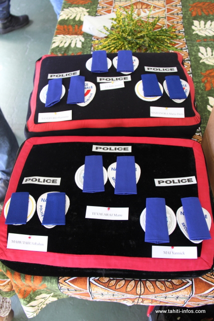 PAPEETE, le 26 août 2016 - Six jeunes policiers ont fini leur formation et rejoindront prochainement les rangs de la direction de la sécurité publique (DSP) et de la police aux frontières. Une cérémonie en leur honneur a été organisée ce vendredi matin au centre régional de formation de la police nationale, à Papeete, en présence d'élus du gouvernement et des représentants de l'Etat.