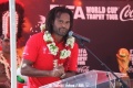 « C’est un grand honneur de voyager avec ce trophée, de le rendre très proche du public pour qu’il puisse savourer et voir ce que c’est une Coupe du Monde, on ne peut pas le porter car seulement les joueurs ayant gagné sont autorisés à le faire par le règlement, mais de le voir et de faire des photos avec, j’espère que cela les remplira de joie. Cette coupe là a une énergie, une histoire, pas simplement celle des français de 98, depuis 1974 plusieurs pays l’ont gagnée et aujourd’hui elle est ici. »