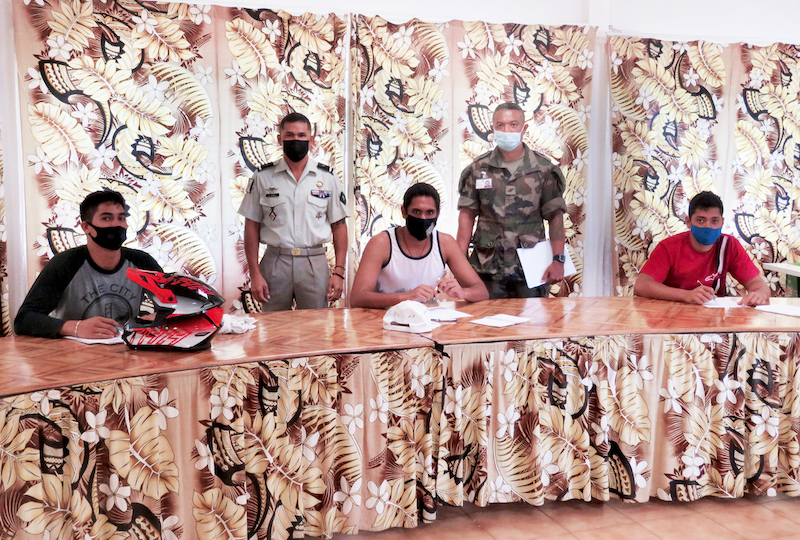 Moorea, le 9 juin 2021 - Des représentants de la Légion étrangère organisent cette semaine des réunions d’information en faveur des jeunes de Moorea. Ils y présentent les métiers proposés dans les différents régiments et procèdent à des tests de sélection pour les personnes intéressées.