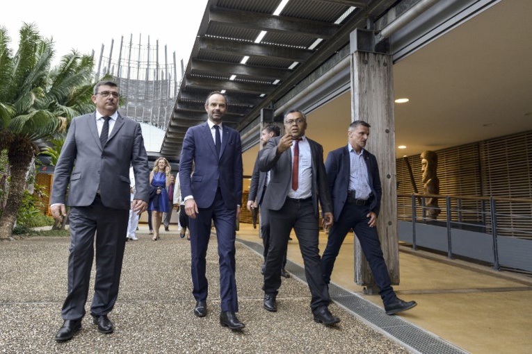 Photo d'archives de Philippe Germain (à gauche) lors du déplacement d'Edouard Philippe en Nouvelle-Calédonie.