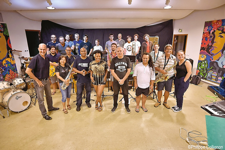 Tahiti, le 22 septembre 2022 - Moins d'une semaine avant l'ouverture de la 2e édition du Tahiti Soul Jazz, le batteur Adonis Rose et la chanteuse China Moses ont participé mercredi à une répétition avec le Big Band du conservatoire. L'entente est au beau fixe entre les maestros de la Nouvelle-Orléans et les jazzmen du fenua.