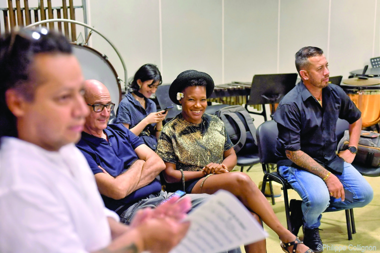 C’est une fin de mois de septembre de haute qualité musicale qui s’annonce à Tahiti avec le retour, après trois années d’attente, de la 2e édition du Tahiti Soul Jazz, organisée par Frédéric Dubuis. Cette année, place à la Nouvelle-Orléans avec le batteur Adonis Rose et les membres du Nojo (New Orléans jazz orchestra). Mercredi en fin d’après-midi, au conservatoire artistique, Adonis, arrivé à Tahiti avant ses musiciens, a pu rencontrer les artistes locaux du Big Band de Jazz et répéter avec eux pour la première résidence. Une résidence consiste à réunir des musiciens pour répéter ensemble, aboutir à diverses créations originales en reprenant des standards du jazz. Adonis Rose, accompagné de China Moses, directrice artistique du festival et fille de Dee Dee Bridgewater, n’a pas perdu de temps, dirigeant avec concentration les différents musiciens du Big Band, forcément impressionnés par le maestro.