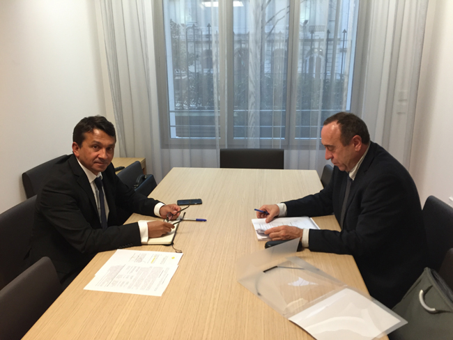 Le vice-président Nuihau Laurey en entretien avec Dominique Mirada, en charge des Outre-mer à la Caisse des dépôts et consignations (CDC) le 5 février à Paris.